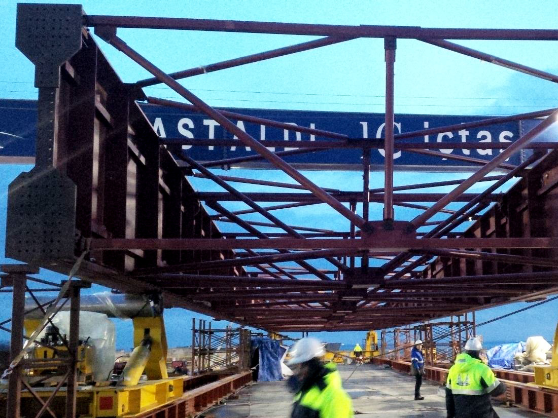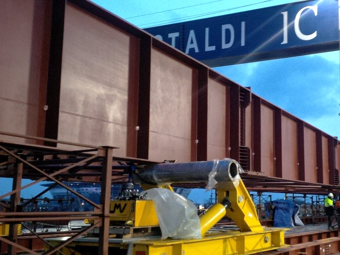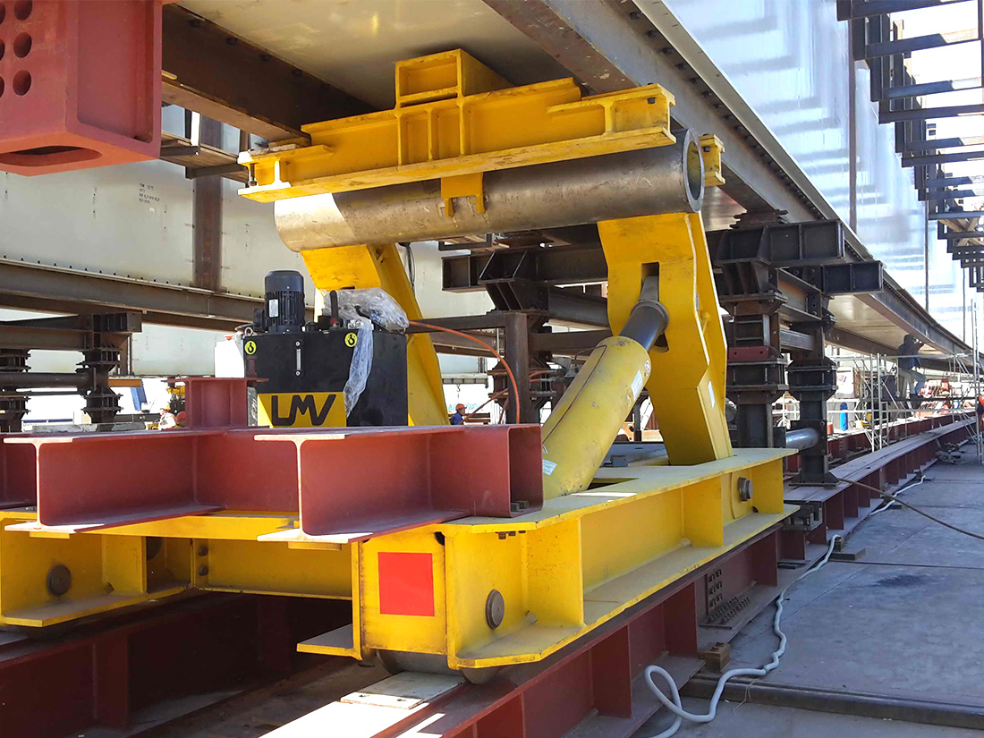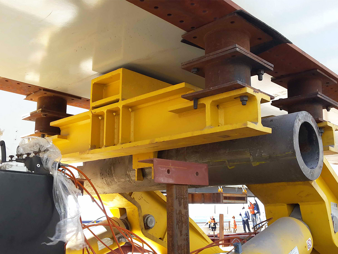 Trolley which support the steel structure of the bridge during launching operation.