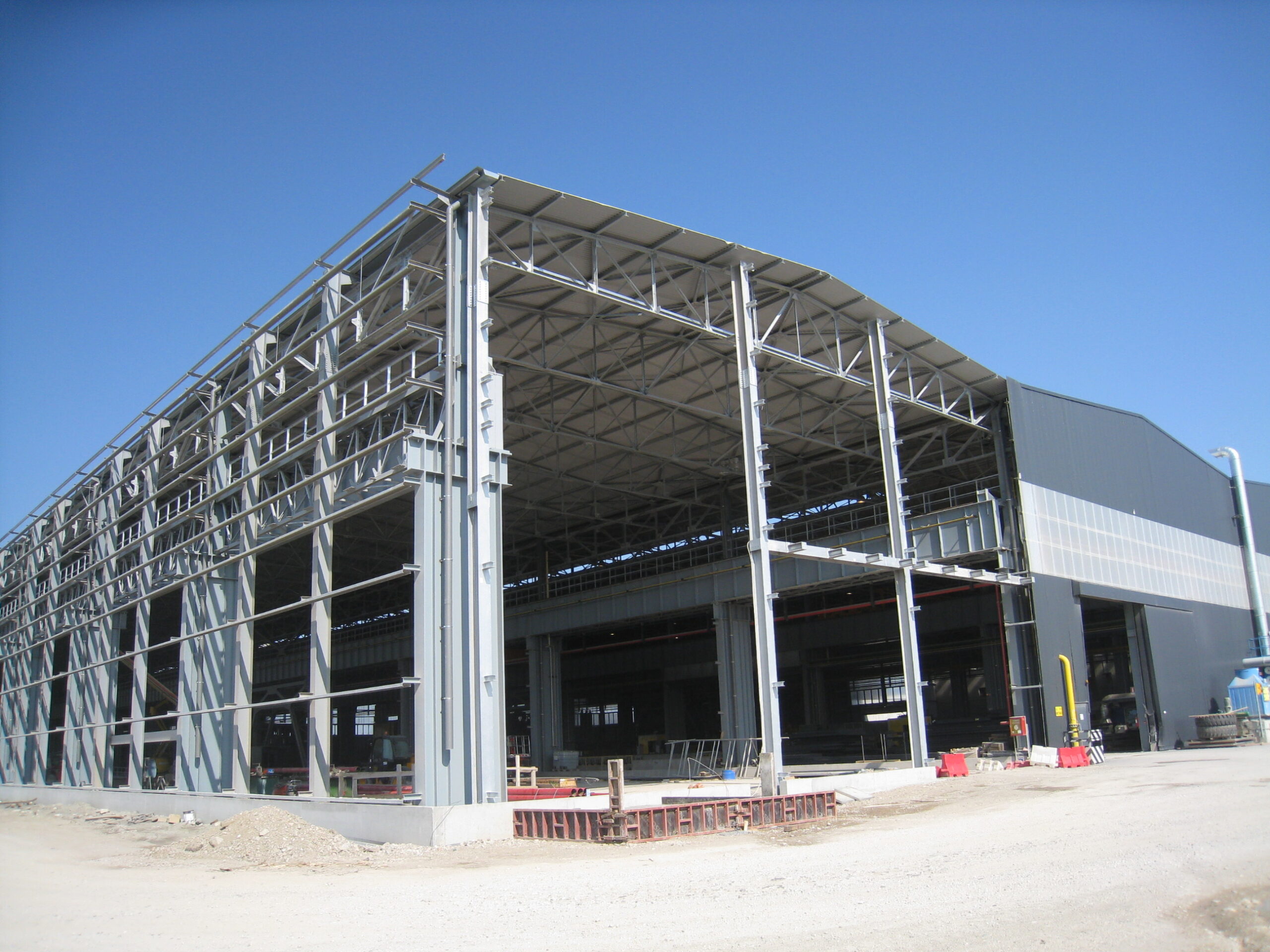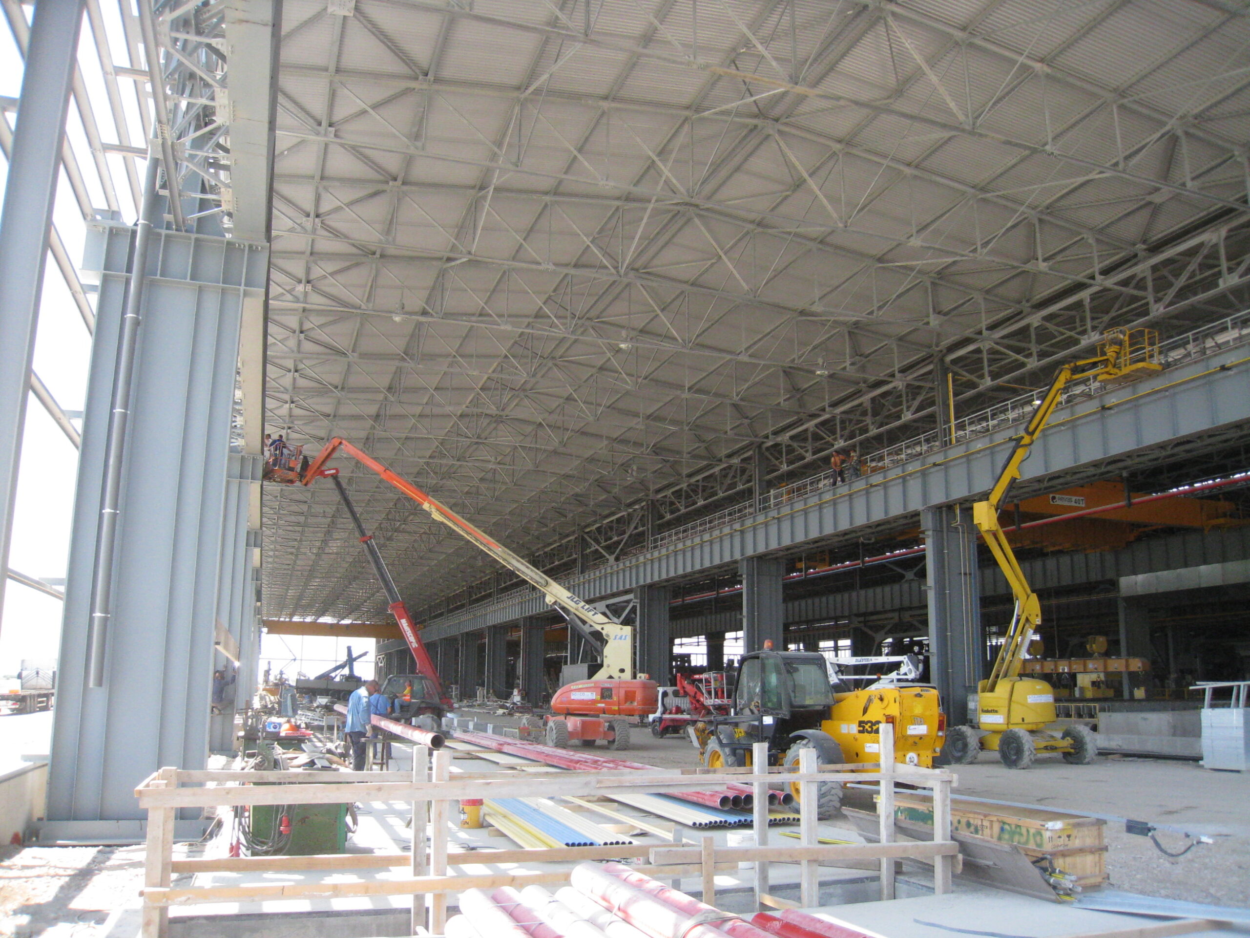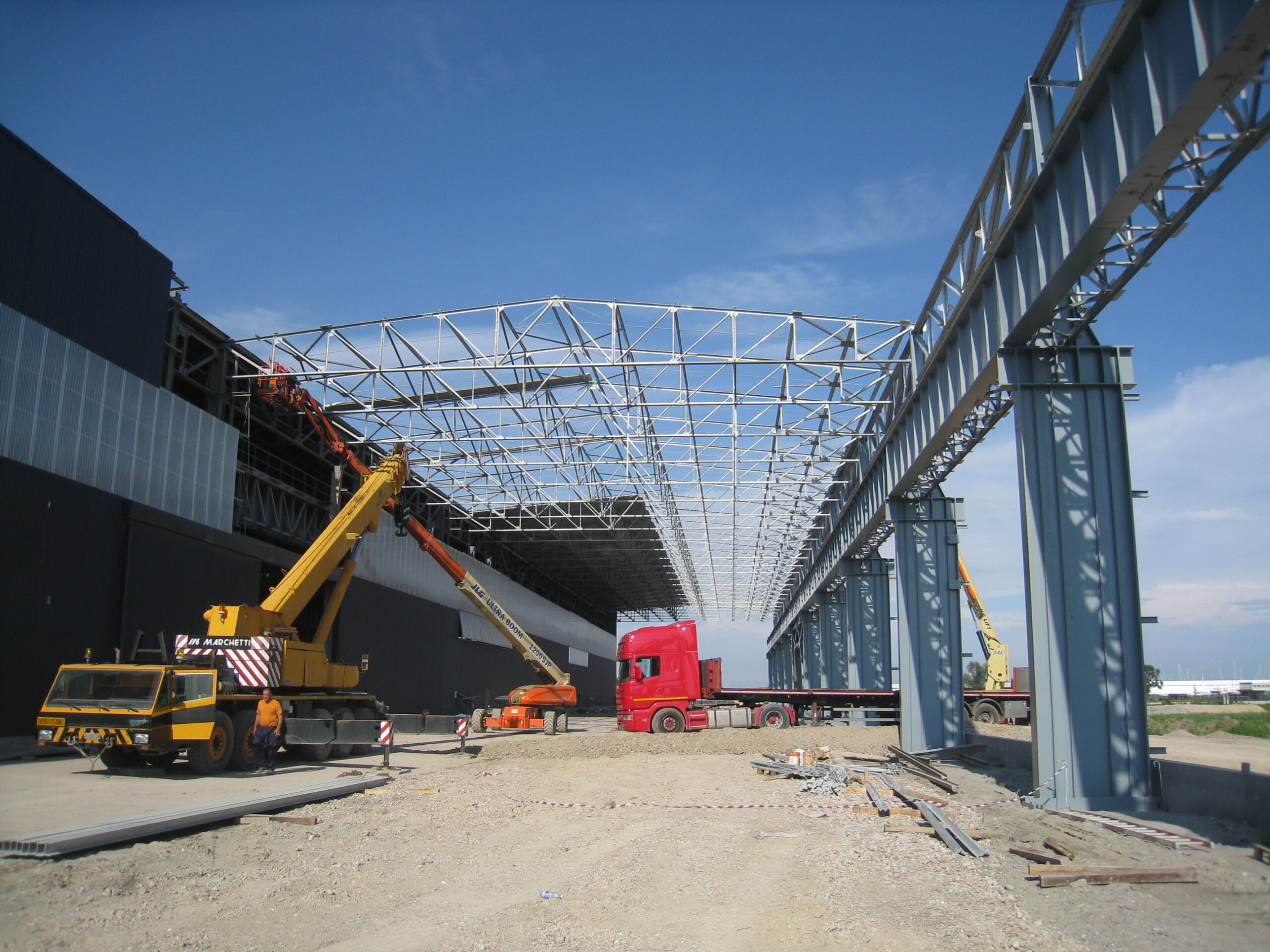 Construction d’un bâtiment industriel de 15 000 m2 pour le laminoir à trois travées (25 m x 200 m, H = 15 m) et de guides pour la grue de 60 t. Le bâtiment étant conçu pour les opérations de laminage, la particularité réside dans la construction de ses structures : les poutres (2 m x 15 m) et les guides soudés à pleine pénétration.