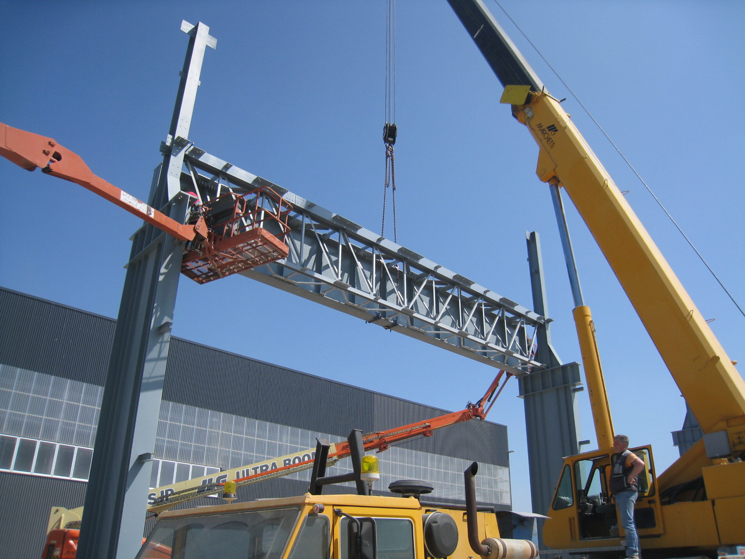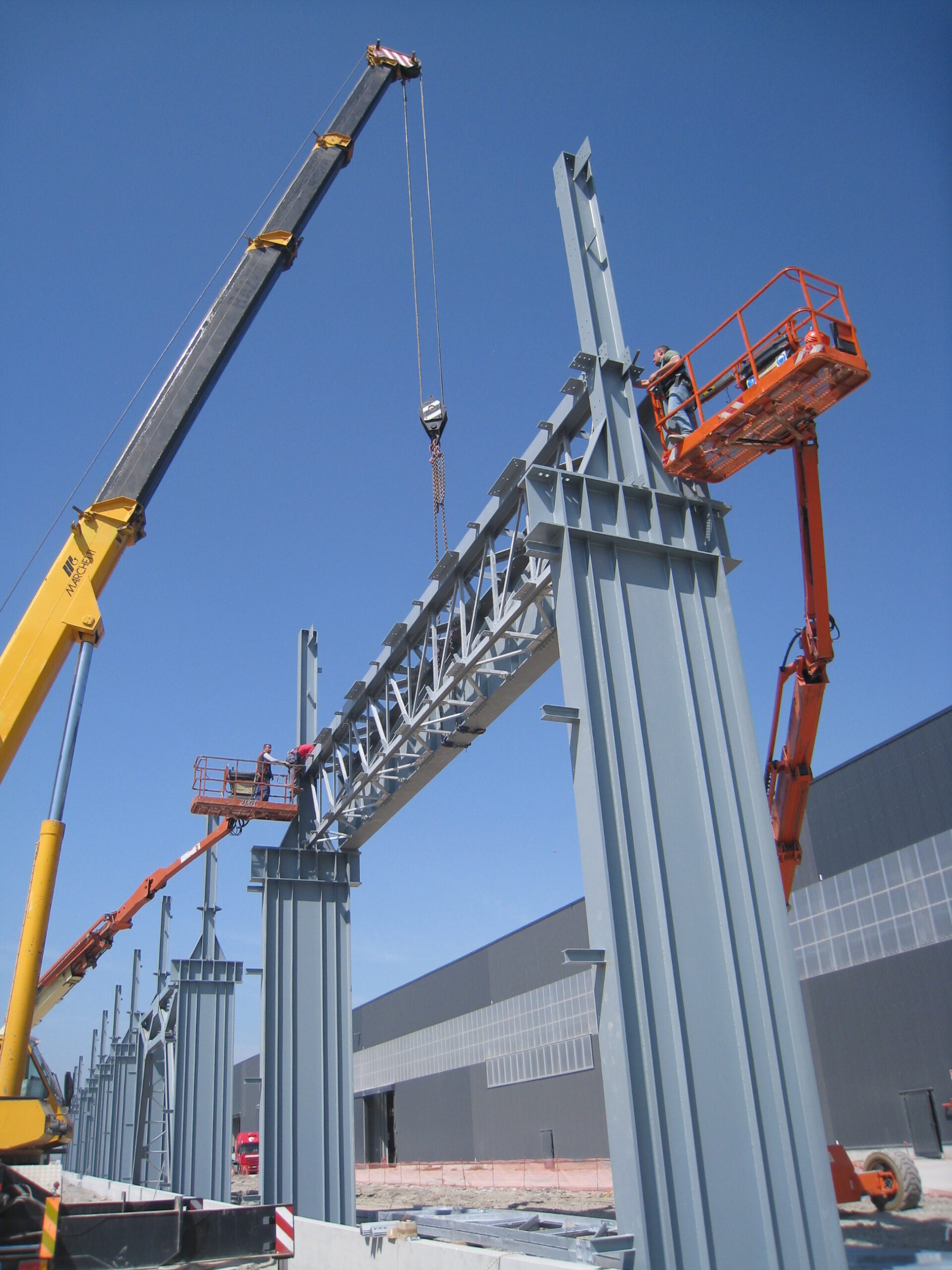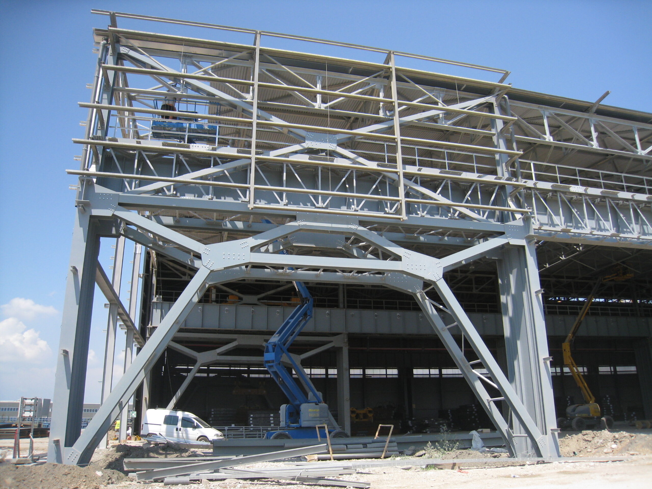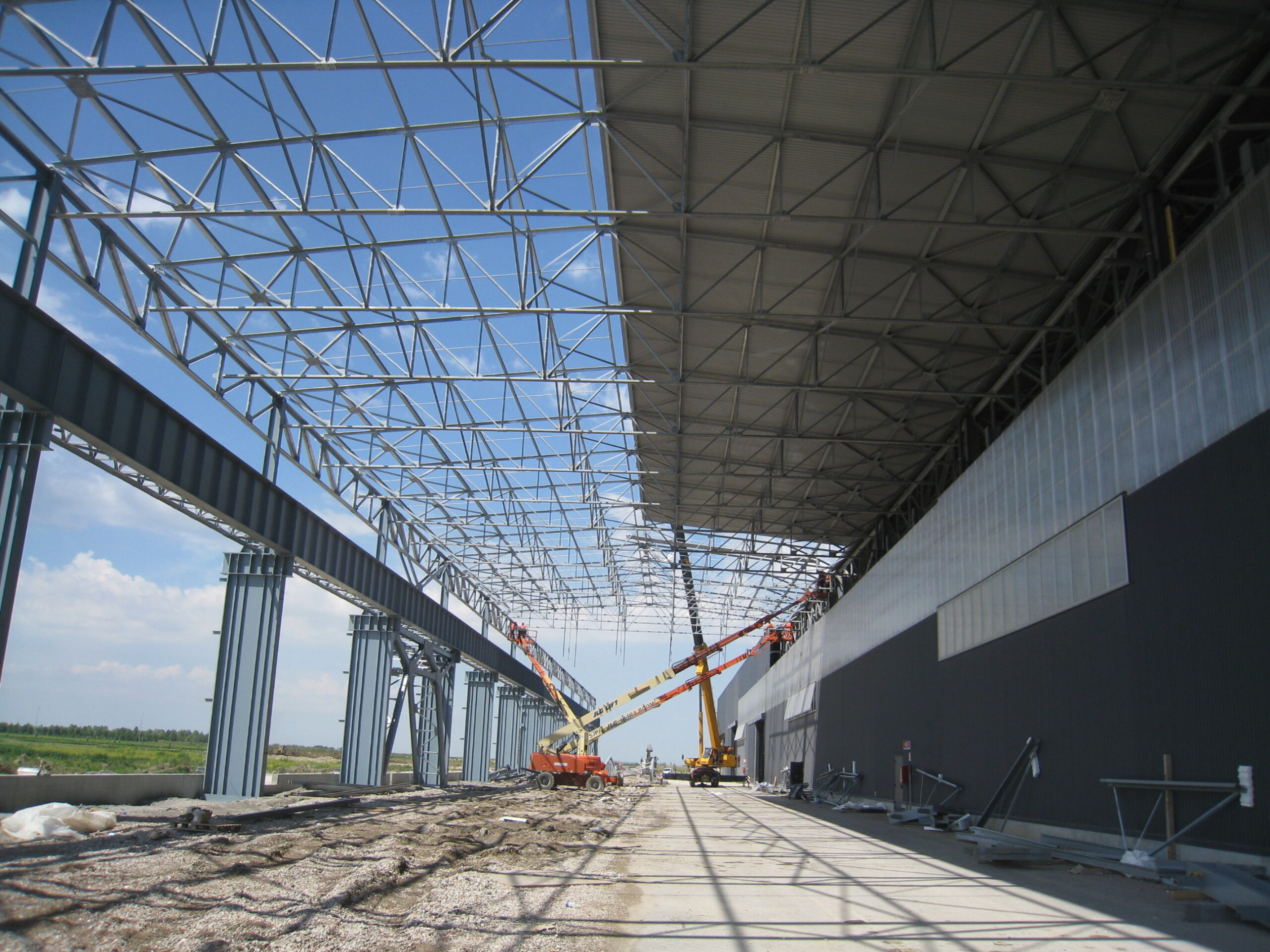 Construction d’un bâtiment industriel de 15 000 m2 pour le laminoir à trois travées (25 m x 200 m, H = 15 m) et de guides pour la grue de 60 t. Le bâtiment étant conçu pour les opérations de laminage, la particularité réside dans la construction de ses structures : les poutres (2 m x 15 m) et les guides soudés à pleine pénétration.